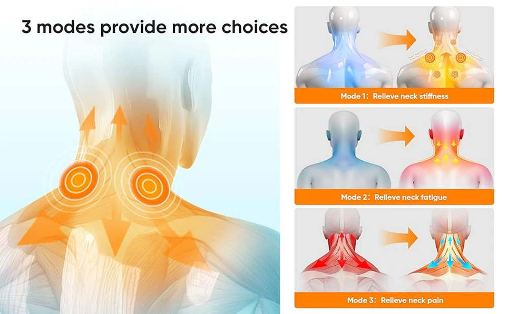 Soothing Heat Therapy: Enjoy the comforting warmth from the built-in heating elements that envelops your neck and shoulders, melting away stress and enhancing your relaxation experience.