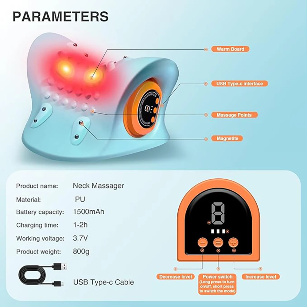 2025 NEW STYLE Multifunction EMS Neck Cervical Massager With Heat, Portable Low-Frequency Pulse Neck Spine Traction Relaxer Massage Pillow With Remote